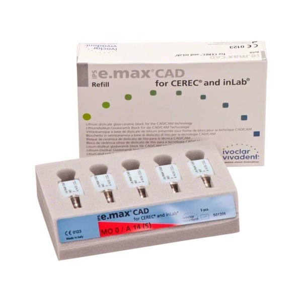 - Блоки IPS e.max CAD A14 выпускаются в 5 цветах MO (Medium Opacity – средняя опаковость) и применяются для изготовления высокоэстетичных гибридных абатментов