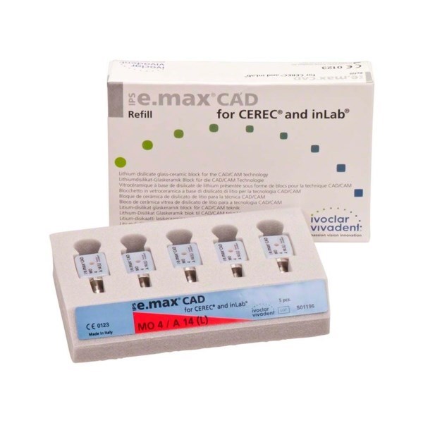 - Блоки IPS e.max CAD A14 выпускаются в 5 цветах MO (Medium Opacity – средняя опаковость) и применяются для изготовления высокоэстетичных гибридных абатментов