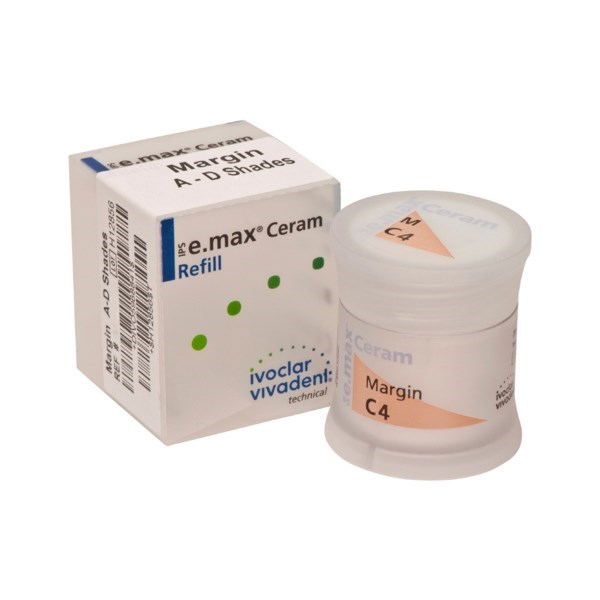 Плечевые массы IPS e.max Ceram Margin с естественной флюоресцентностью шейки зуба, служат для создания керамических уступов на каркасах IPS e.max ZirCAD. Благодаря разнице в температуре обжига с массами дентина и режущего края имеют высокую стабильность при обжиге. Массы выпускаются в цветах A–D/Chromascop.