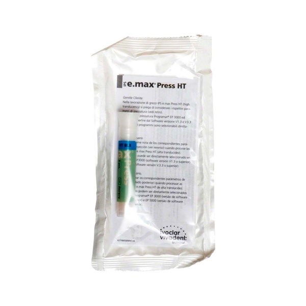 Заготовки IPS e.max Press HT (High Translucency – высокая прозрачность) отличаются высокой прозрачностью, за счет чего идеально подходят для изготовления полноанатомических прессованных реставраций (техника окрашивания). Выпускаются в 16 цветах A–D и 4 ультрасветлых цветах Bleach.