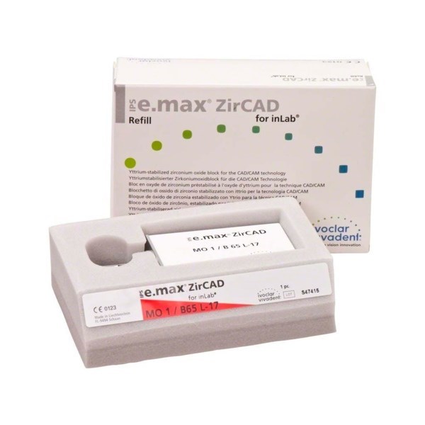 Блоки из оксида циркония IPS e.max ZirCAD inLab MO B55 L-17 фрезеруются в системе inLab, благодаря высокой прочности после спекания (>900 МПа) из них можно изготавливать протезы на боковые зубы. На каркасы напрессовывается материал IPS e.max ZirPress или наносится облицовочный материал IPS e.max Ceram. Выпускаются в девяти размерах и трех цветах.