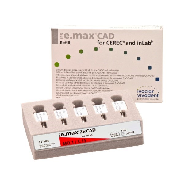 Блоки из оксида циркония IPS e.max ZirCAD inLab С15 MO фрезеруются в системе inLab, благодаря высокой прочности после спекания (>900 МПа) из них можно изготавливать протезы на боковые зубы. На каркасы напрессовывается материал IPS e.max ZirPress или наносится облицовочный материал IPS e.max Ceram. Выпускаются в девяти размерах и трех цветах.