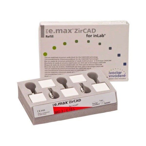 Блоки из оксида циркония IPS e.max ZirCAD inLab С15 L MO фрезеруются в системе inLab, благодаря высокой прочности после спекания (>900 МПа) из них можно изготавливать протезы на боковые зубы. На каркасы напрессовывается материал IPS e.max ZirPress или наносится облицовочный материал IPS e.max Ceram. Выпускаются в девяти размерах и трех цветах.