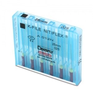 K-File Nitiflex - каналорасширители ручные набор. Предназначены для срезания дентина при ретракции – выведении его из канала. Используется для снятия неровностей на стенках корневого канала, которые образуются в процессе его расширения. Изготовлен из никель-титанового сплава прямоугольного поперечного сечения. Инструмент имеет эргономическую пластмассовую ручку, супергибкий, имеет высокую эластичность. Длина оперативной части 25 мм, начальный диаметр рабочей части и цветовая кодировка 0,15 мм белая, 0,20 мм желтая, 0,25 мм красная, 0,30 мм синяя, 0,35 мм зеленая, 0,40 мм черная. Силиконовый стоп толщиной 1,5 мм. Упаковка 6 шт.