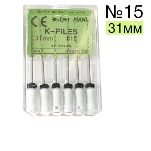 Описание: К-Files №15 Мани (31мм)Эндодонтические инструменты K-Files MANI применяются в стоматологии в подготовительных целях перед сложными реставрациями для расширения и коррекции формы корневых каналов.