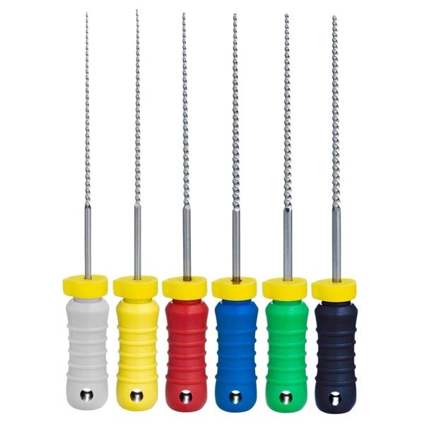 K-файлы EUROFILE изготовлены из нержавеющей стали и снабжены пластиковыми рукоятками и силиконовыми стопперами. Дрильбор ручной типа K-FILES — наиболее распространенный эндодонтический инструмент, применяемый для прохождения и расширения корневых каналов зубов. Стальные К-файлы прочные и достаточно гибкие, чтобы минимизировать риск травмирования при обработке канала.