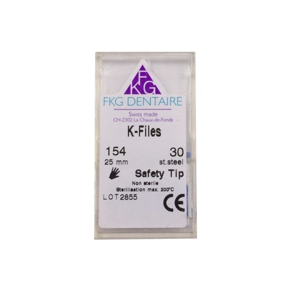 Ручные эндодонтические файлы изготовлены из стали или NiTi стандартных ISO размеров от 6 до 40, имеют неактивный безопасный кончик, который является эксклюзивной разработкой компании FKG, и эргономичную ручку — (SMG). Эргономичную ручку удобнее держать, благодаря увеличенному диаметру. На конце ручки расположен 8-сегментный индикатор кратности использования. После каждого применения