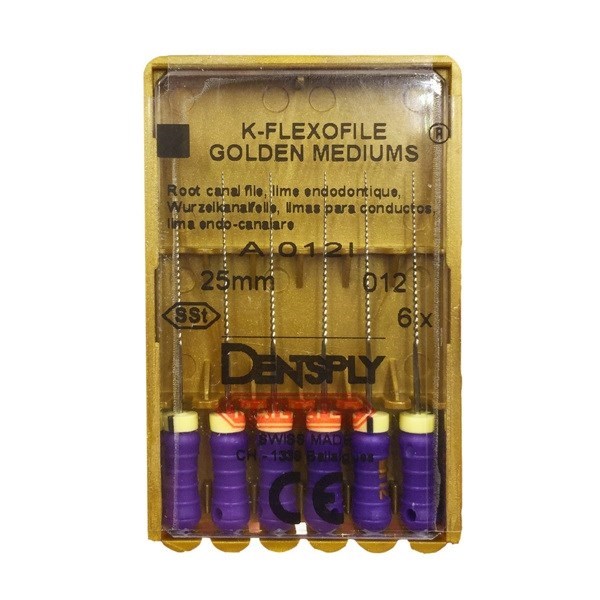 Ручной каналорасширитель K-Flexofile Golden Medium № 12, длина 25 мм. Поставляется в упаковке по 6 шт в стерильном блистере. Эндодонтический файл K-Flexofile Golden Medium № 12 используется для препарирования и создания формы корневого канала.
