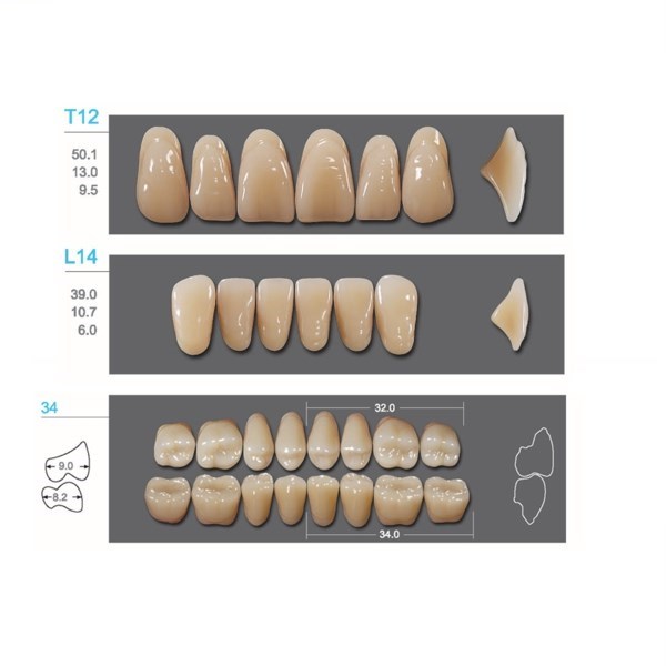 Зубы Kaifeng представлены во всех вариантах цветов по шкале Vita, а многообразие форм позволит реализовать творческий подход при изготовлении протезов. Жесткие зубы, высокая износостойкость.
