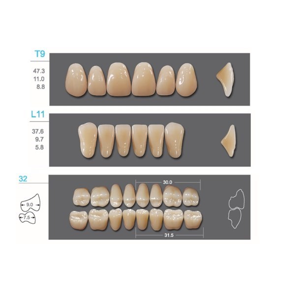 Зубы Kaifeng представлены во всех вариантах цветов по шкале Vita, а многообразие форм позволит реализовать творческий подход при изготовлении протезов. Жесткие зубы, высокая износостойкость.