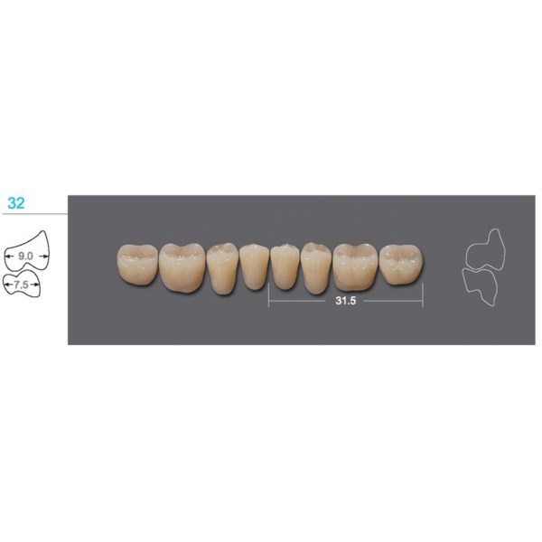 Kaili - зубы акриловые 8*1/ A2, 32L (1 планка)