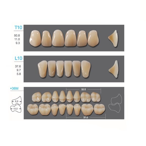 Kaili - зубы акриловые, верхние T10/нижние L10, цвет D3, размер *36M, коробка 4х28 шт
