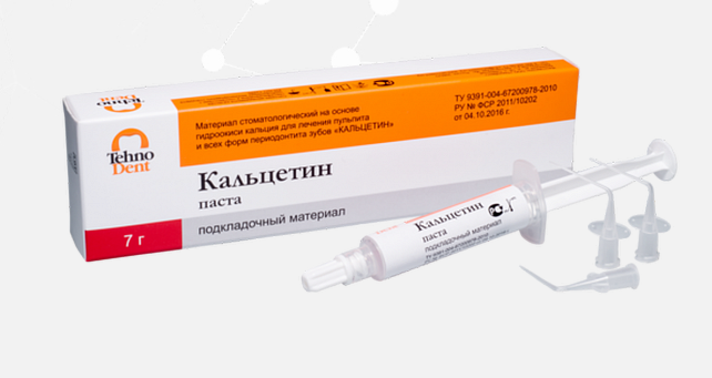 Кальцетин подкладочный паста (7 гр) на основе гидроокиси кальция.