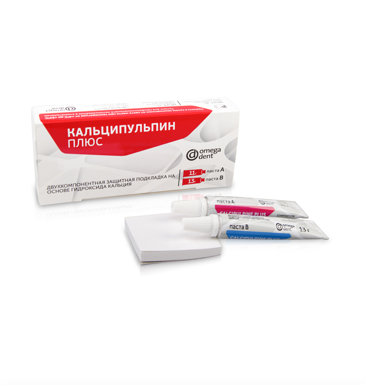 "КАЛЬЦИПУЛЬПИН ПЛЮС" используется в качестве защитной самотвердеющей подкладки на основе гидроксиапатита и гидроксида кальция при изоляции полости зуба от пломбировочных материалов, а также прямом и непрямом покрытии пульпы.