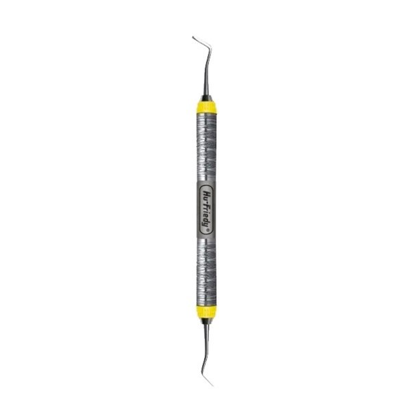Гладилка-карвер с ручкой №7 от Hu-Friedy выделяется желтой силиконовой вставкой на переходниках от ручки к рабочим частям. Инструмент позволяет сначала сформировать, распределить и уплотнить пломбировочный материал в кариозной полости зуба с помощью гладилки.