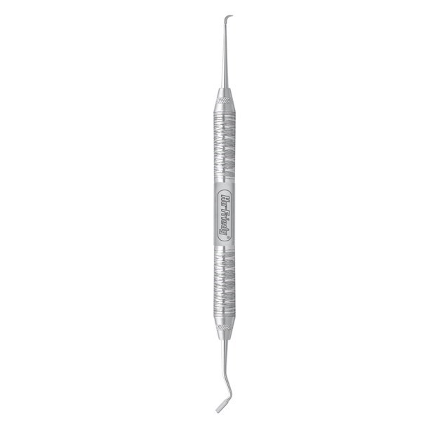Изогнутый карвер/плаггер (стабилизатор) для работы с винирами от американской компании Hu-Friedy предназначается для стабилизации накладок на зубах во время закрепления композитов. Изогнутые хвостовики помогают работать на труднодоступных участках полости рта.