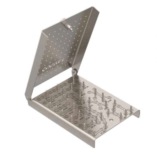 Кассета-укладка изготовлена из титана, имеет прямоугольную форму размером 112х82 мм. Применяется для стерилизации пластин.