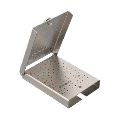 Кассета-укладка изготовлена из титана, имеет прямоугольную форму размером 112х82 мм. Применяется для стерилизации винтов D=1,2 мм.