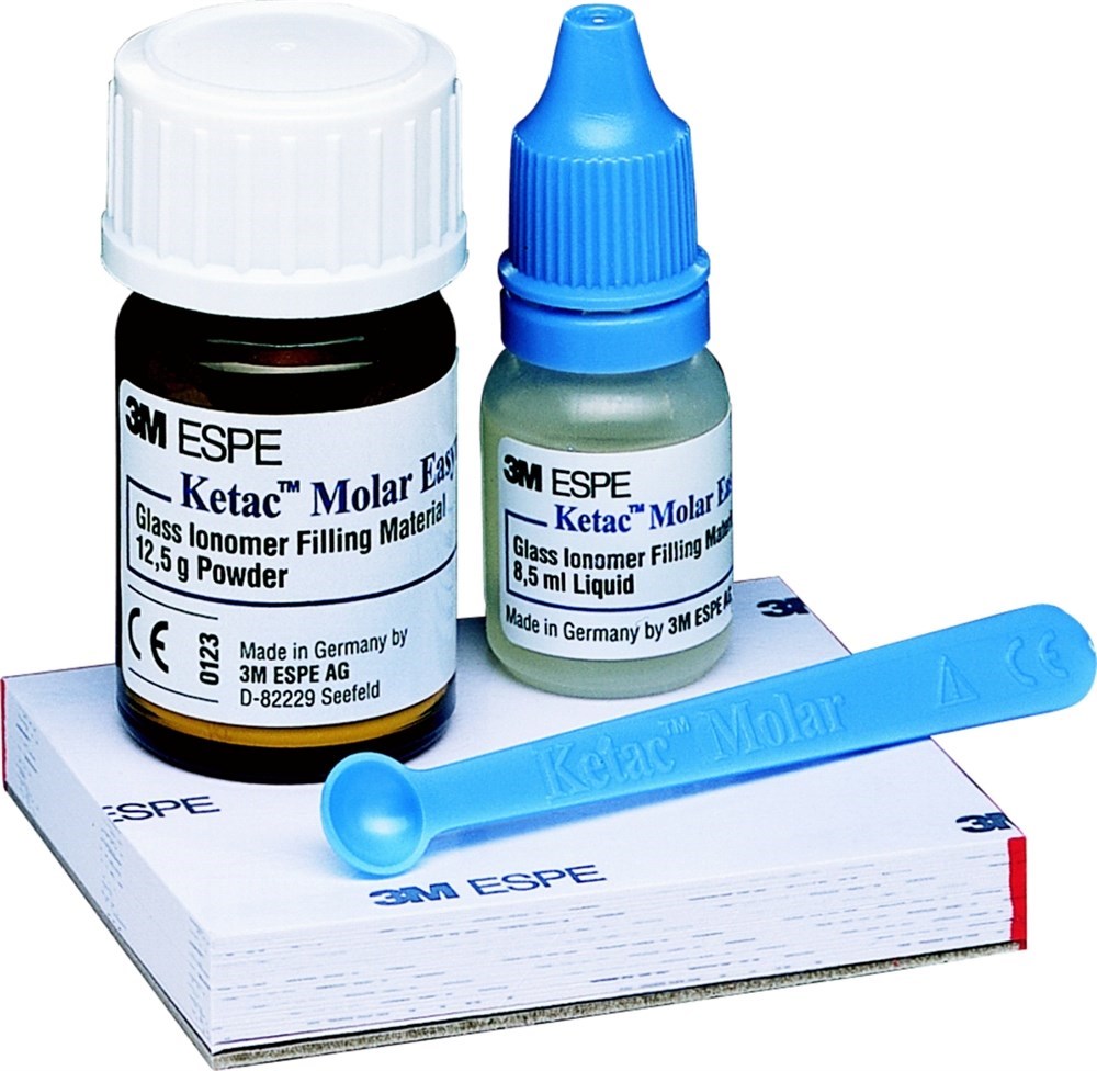 3M-Ketac-Molar Easymix (Пробный набор) порошок цвет А3 (12,5 гр), жидкость 8,5 мл, кондиционер для протравки, лак для окончания обработки, блокнот для замешивания, аксессуары.