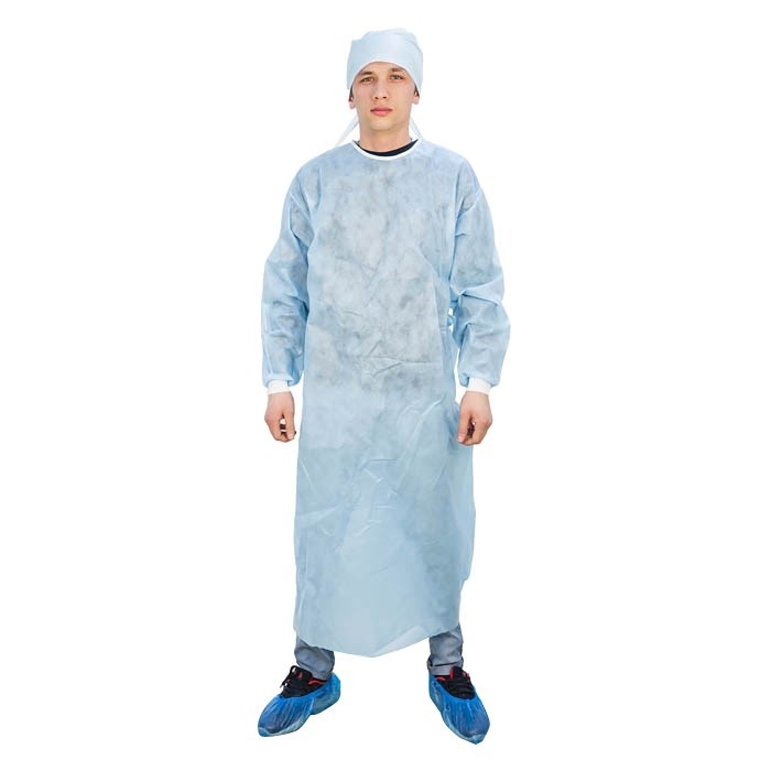 Халат хирургический стерильный из нетканого полипропилена (спанбонда), не стесняет движений.