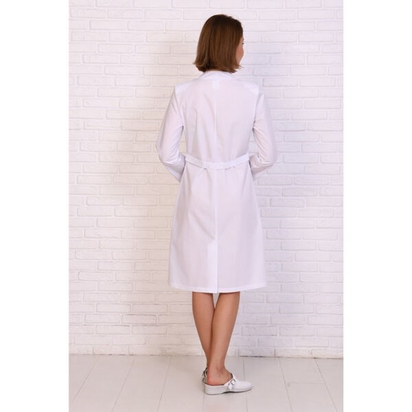 Женский медицинский халат модели 192СД от производителя СтильБ имеет приталенный крой, длинный рукав, V-образный воротник и длину до колен. Изделие застегивается спереди на пуговицы, дополняет образ два накладных кармана спереди и шлица сзади.
