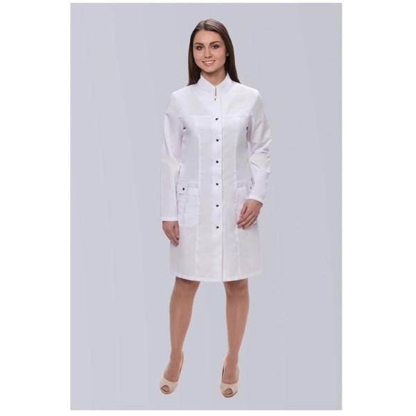 Стильный оригинальный медицинский халат 248 модели имеет изящно приталенный силуэт с длинными рукавами, воротник-стойку и гармоничную застежку на кнопках со шляпкой. Грациозные полупояса на спинке, которые застегиваются на кнопки и придают утонченность вашей фигуре.