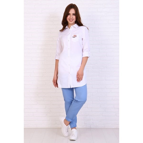 Стильный женский медицинский халат-рубашка 256 модели имеет изящный полуприлегающий силуэт с центральной бортовой застежкой на кнопках, длиной выше колена и с естественной линией талии. Изделие дополнено двумя функциональными незаметными карманами, элегантным втачным рукавом, с патой для регулировки длины и аккуратным отложным воротником. Это отличный вариант медицинского халата, который, как никогда, подойдет студентам медицинских учреждений. Халат можно носить как отдельно, так и комбинировать с брюками. Современная, функциональная и очень удобная модель!