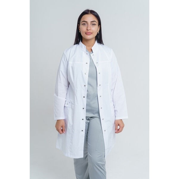 Халат женский на кнопках 248 Ultra, длинный рукав, белый, 46