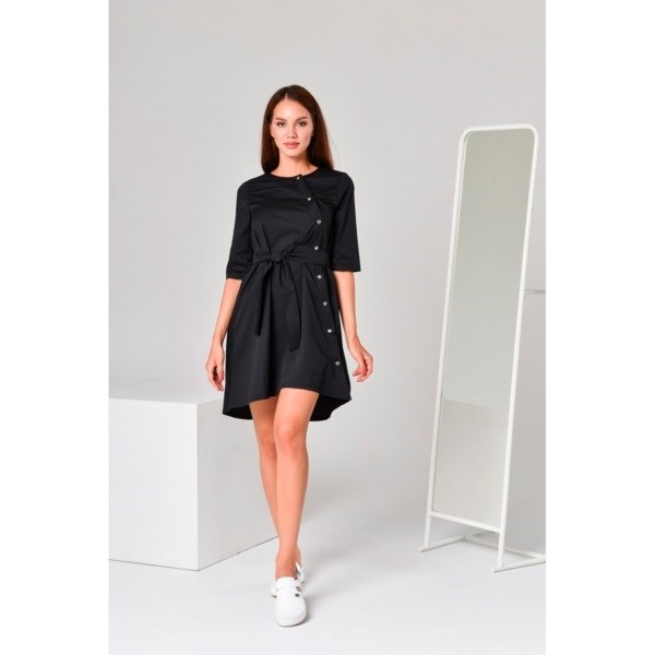 Женский медицинский халат бренда Mariita имеет стильный фасон с А-силуэтом. Модель дополнена округлым вырезом горловины, ассиметричной застежкой на металлические кнопки и поясом.