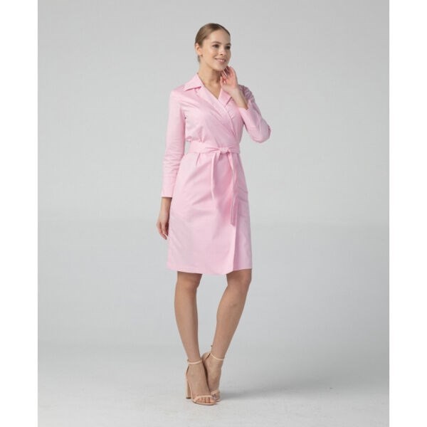 Халат медицинский приталенный с запахом, идет на поясе, рукав с отворотом ¾ длиной. В боковых швах карманы, внизу сзади разрез-шлица.