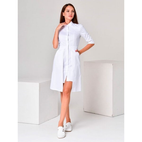 Женский медицинский халат Mariita выполнен в необычном оригинальном фасоне с двойной юбкой, в таком образе вы точно не останетесь незамеченной! Модель имеет рукав 3/4, воротник-стойку, боковые карманы и скрытую застежку спереди.