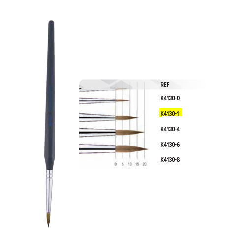 Кисть для нанесения керамики, Kolinski, шерсть сибирской куницы, размер 1, арт: K4130-1