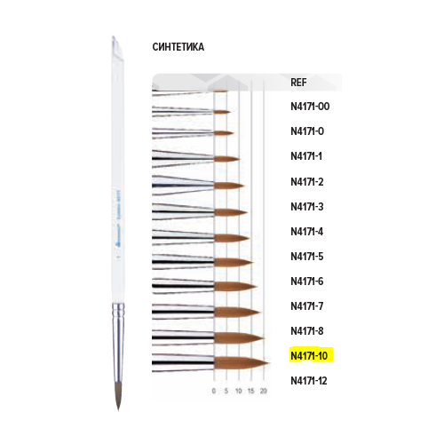 Кисть для нанесения керамики, синтетический ворс, размер 10, арт: N4171-10