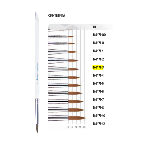 Кисть для нанесения керамики, синтетический ворс, размер 3, арт: N4171-3