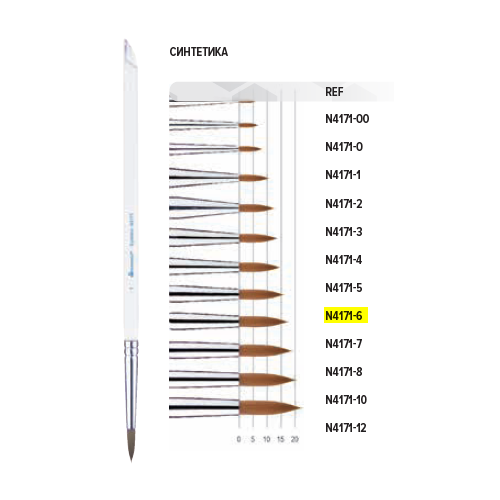 Кисть для нанесения керамики, синтетический ворс, размер 6, арт: N4171-6