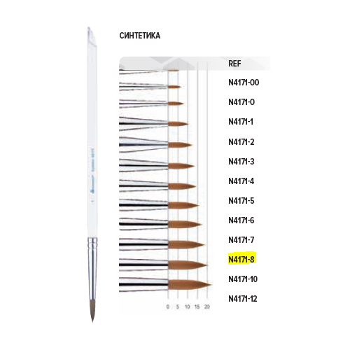Кисть для нанесения керамики, синтетический ворс, размер 8, арт: N4171-8