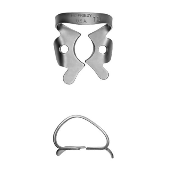 Кламмер для коффердама от американского бренда Hu-Friedy применяется для закрепления силиконовой пленки на нижних правых молярах.