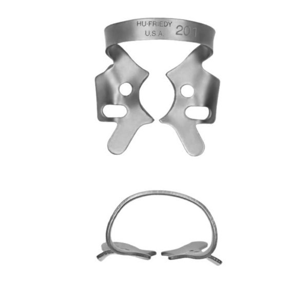 Кламмер для коффердама от американского бренда Hu-Friedy применяется для работы на верхних молярах. Форма и размер помогают устанавливать инструмент на зубы с разными характеристиками на труднодоступной области полости рта. Конструкция помогает быстро и легко снять или зафиксировать изделие.