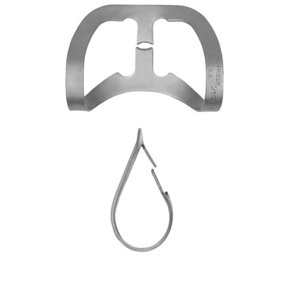 Кламмер для коффердама от американской компании Hu-Friedy применяется для работы на фронтальных зубах нестандартной формы: с врожденными аномалиями или приобретенными повреждениями. Ступенчатые тонкие плоские щечки надежно захватывают зуб, закрепляют на нем коффердам.