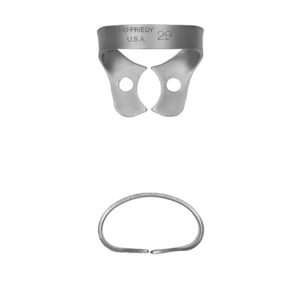 Кламмер для коффердама от американского бренда Hu-Friedy применяется специально для нижних премоляров. Конструкция без крыльев обеспечивает удобный доступ к отдаленным участкам зубного ряда.