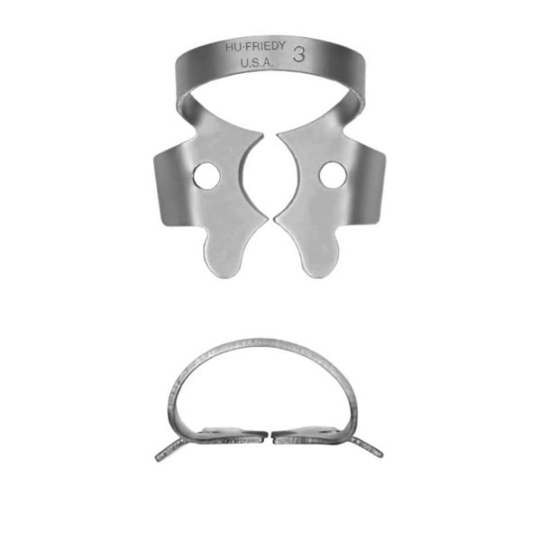 Кламмер для коффердама для нижних моляров от американского бренда Hu-Friedy обеспечивает стоматологу идеальную рабочую зону. Форма и размер модели помогают работать на труднодоступных участках ротовой полости. Конструкция и материал с памятью формы помогают быстрее и проще устанавливать и снимать кламмер.