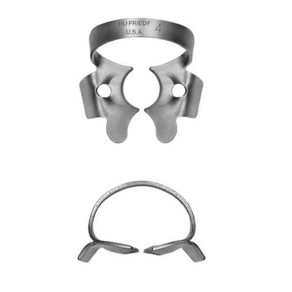 Кламмер для коффердама от американской компании Hu-Friedy применяется для работы на верхних маленьких молярах. Узкие миниатюрные щечки надежно фиксируют силиконовую пластину на мелких зубах. Конструкция позволяет быстро и легко снимать и устанавливать заново кламмеры.
