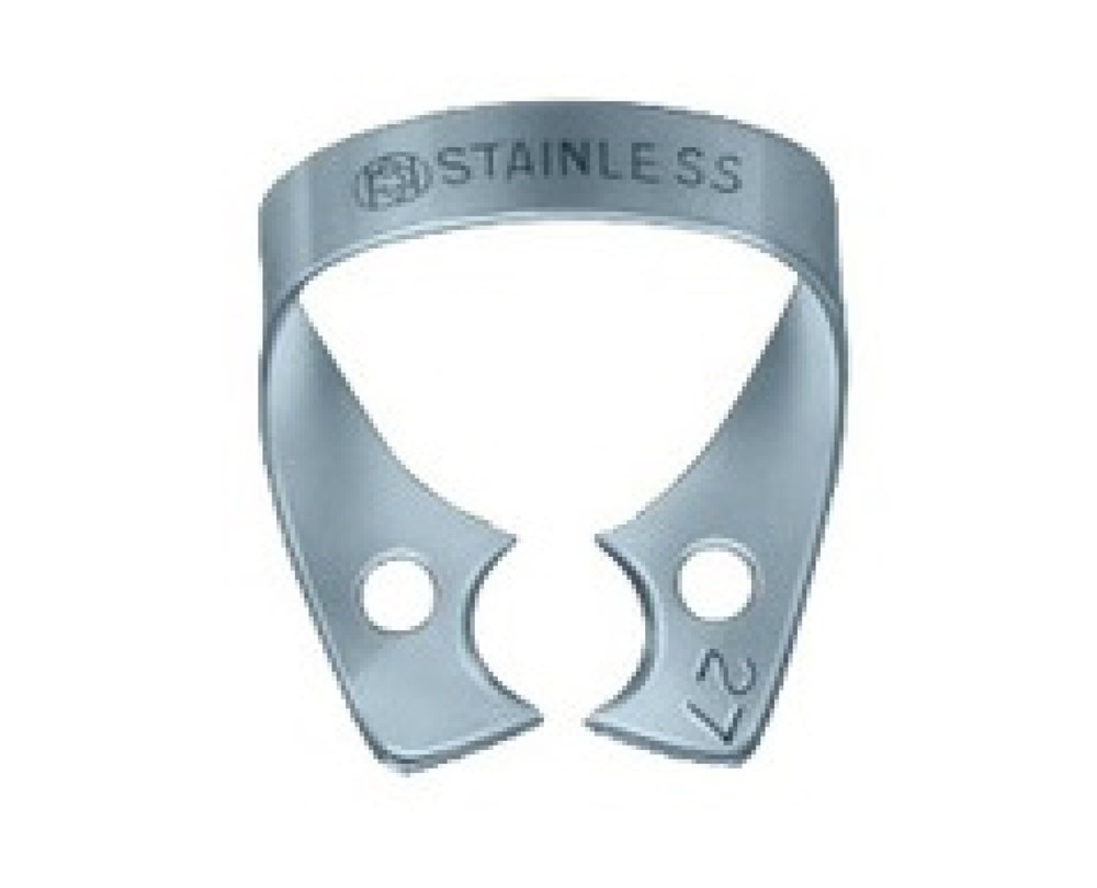 Кламп для клыков и премоляров верхней и нижней челюсти, для зубов с сильно разрушенной или отсутствующей коронковой частью. Латеральные крылья отсутствуют.