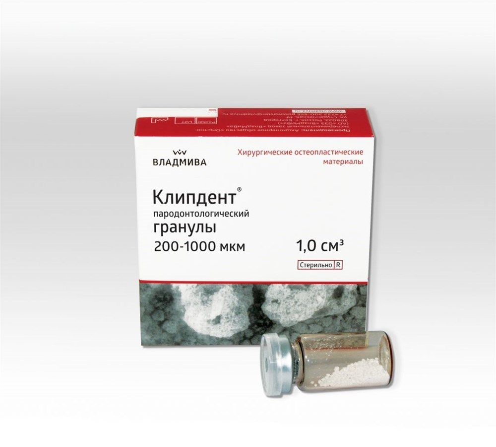 Материал «Клипдент» пародонтологический представляет собой резорбируемые кальций-фосфатные многослойные гранулы с пролонгированным высвобождением активных действующих веществ.
