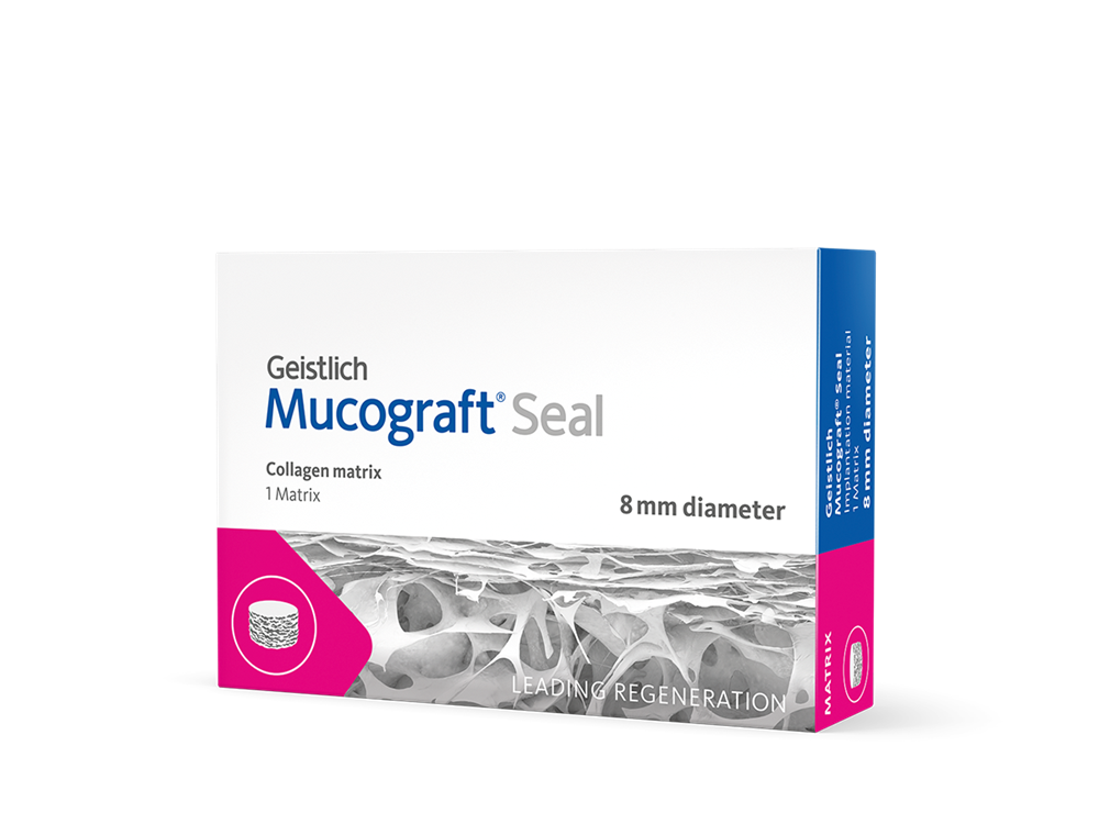 Geistlich Mucograft ® Seal является альтернативой аутогенному мягкотканному трансплантату и применяется при операции сохранения объема лунки после удаления для улучшения состояния мягких тканей после заживления. Применяется ТОЛЬКО в сочетании с костнозамещающим материалом, например, Geistlich Bio-Oss® Collagen.