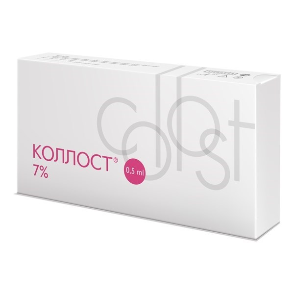 - После введения геля «Коллост» 7% могут возникать явления, характерные для любой инъекции. Это эритема, отечность, боль или болезненность в месте введения, экхимозы. Обычно вышеуказанные явления проходят самопроизвольно в течение 1-2 дней после инъекций