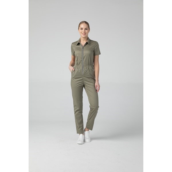 Женский медицинский комбинезон Dr.Nice выполнен в оригинальном стиле с застежкой-молнией спереди, отложным воротником и коротким рукавом. Модель дополняет два боковых кармана и резинка по линии талии.