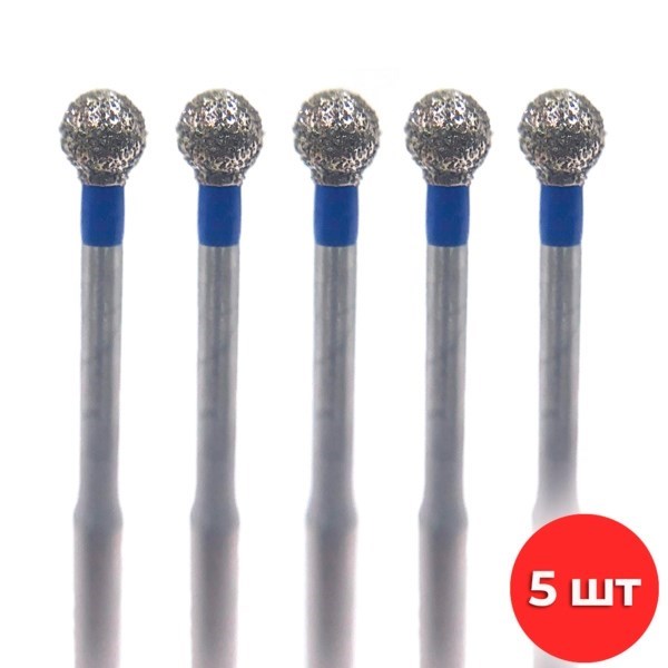 Комплект алмазных боров Ecoline E 801L, шаровидный удлиненный, D=1.6 мм, синий , 5 шт