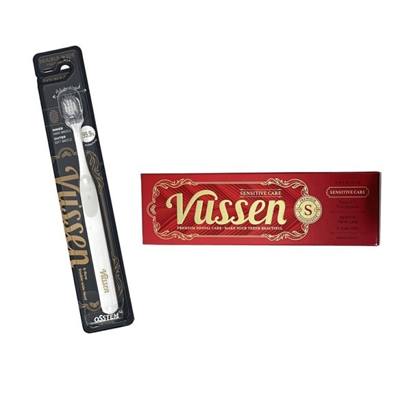 Комплект зубная паста Vussen S + щетка Vussen "Double-Wide", белая
