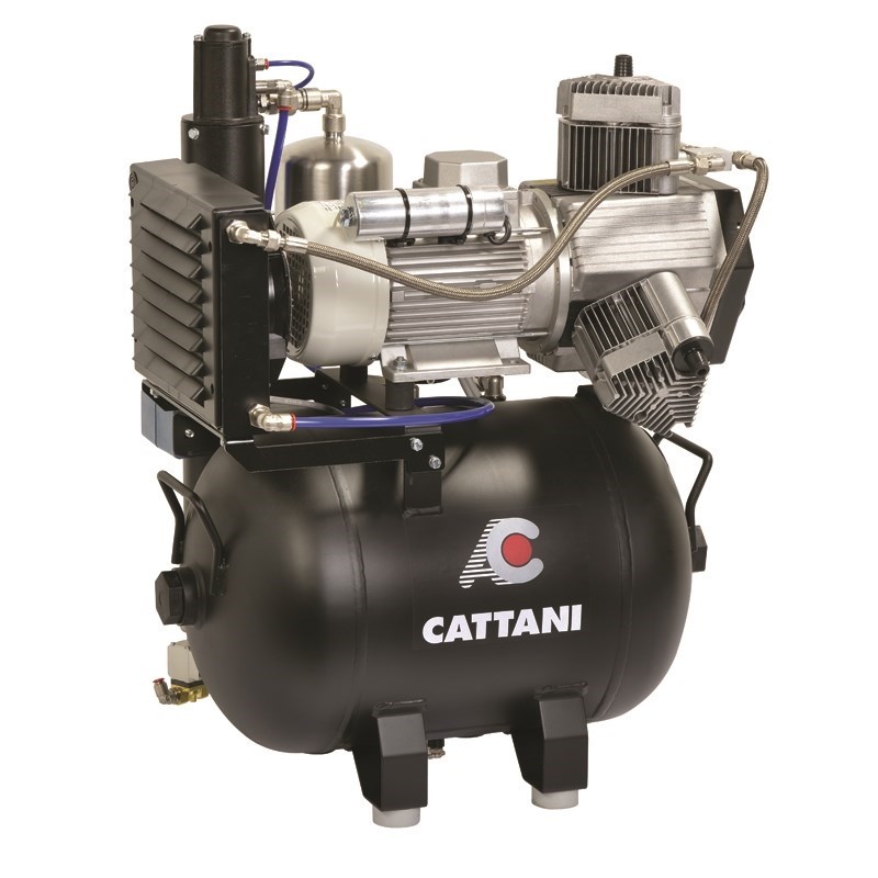 Компрессор стоматологический CATTANI на 1 установку - одноцилиндровый, безмасляный, оборудован осушителем, системой охлаждения и фильтров.